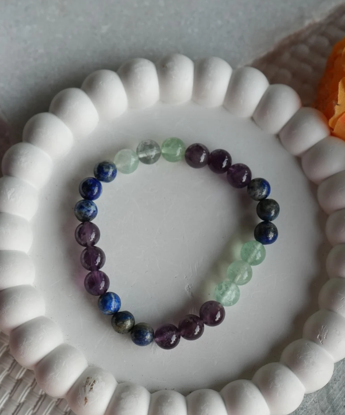 Headache & Migraine Relief Bracelet – Amethyst, Lapis Lazuli, and Green Fluorite ease tension and soothe discomfort. Release mental fatigue and invite a calm, refreshed clarity to your day.